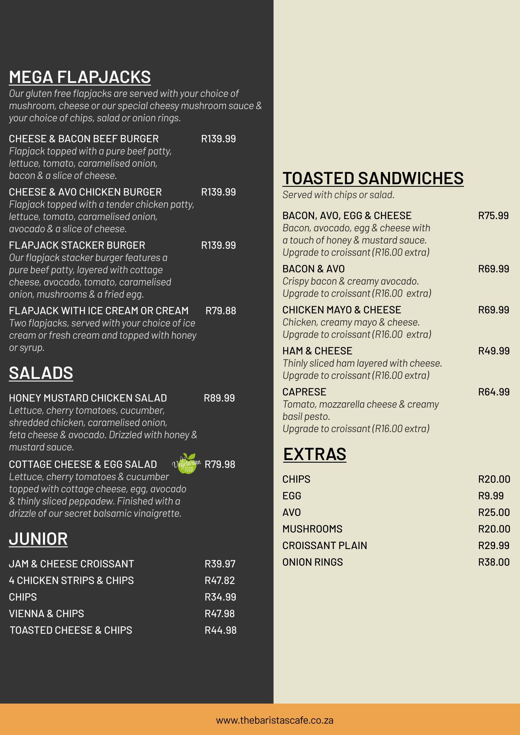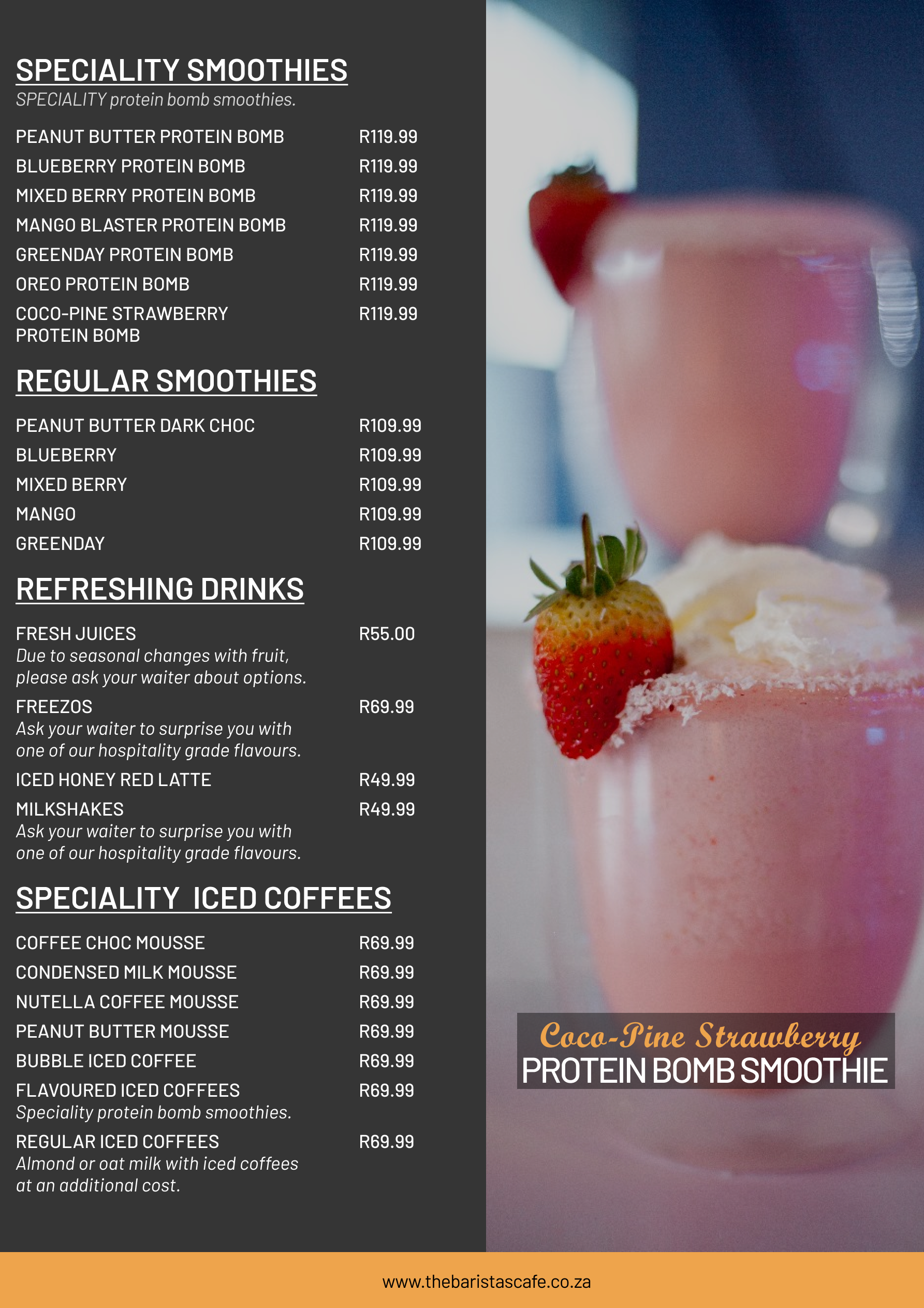 In 2023, The Baristas Coffee expanded its reach to George, founded The Barista’s Café and committed to engage and uplift the local community. This exciting venture introduces our distinctive combination of craft coffee and our unique recipes to the heart of George as we collaborate with Planet Fitness in Heather Park.